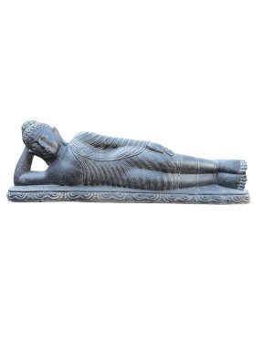 Deze elegante liggende Boeddha staat voor diepe ontspanning, verlichting en het loslaten van dagelijkse zorgen. Hij wordt afgebeeld in het moment van zijn overgang naar parinirvana, een ultieme staat van vrede. Het beeld brengt sereniteit in elke ruimte en herinnert aan bewust leven en balans. Perfect voor interieur, werkplek of meditatiehoek.