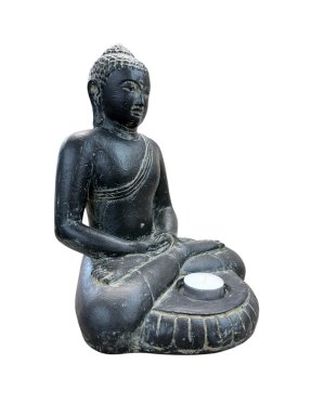 Breng rust en sfeer in je interieur met deze prachtige zittende Boeddha van steen. Het beeld heeft een hoogte van 30 cm en is afgewerkt in een stijlvolle black antique kleur die zowel modern als tijdloos oogt. De Boeddha houdt een speciaal vakje vast dat dient als theelichthouder, waardoor een warm en sereen licht ontstaat zodra je een kaarsje aansteekt. Ideaal voor in de woonkamer, meditatiehoek, badkamer of als spiritueel cadeau.