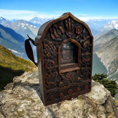 Een Ghau is een traditioneel Tibetaans reisaltaar of amuletdoosje. Het bevat vaak heilige voorwerpen, mantra’s of afbeeldingen van Boeddha en wordt gedragen voor bescherming onderweg. Het symboliseert spirituele verbondenheid, waar je ook bent.