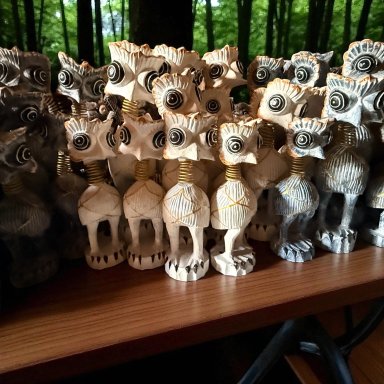 Deze speelse Kiki-vogel van 50 cm is met de hand uit hout gesneden en voorzien van een bewegend hoofd, wat het geheel een levendig en charmant karakter geeft. De organische vormen, zachte houtstructuur en verfijnde afwerking maken dit decoratiestuk een unieke blikvanger in woonkamers, inkomruimtes, winkels of kindvriendelijke omgevingen. Dankzij de warme uitstraling en het expressieve design past deze vogel moeiteloos in zowel moderne als natuurlijke interieurs. Een decoratief kunstobject dat vrolijkheid en persoonlijkheid toevoegt aan elke ruimte.