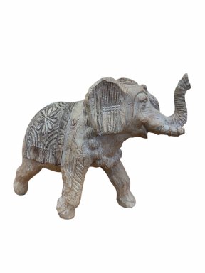 Deze staande olifant met de slurf omhoog staat symbool voor kracht, bescherming en voorspoed. In vele culturen wordt de opgerichte slurf gezien als een teken van geluk en positieve energie. Een stijlvol decoratief stuk dat zowel een krachtig statement maakt als harmonie brengt in elke ruimte.