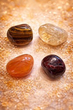 Deze set geeft energie en daadkracht. Carneool en Granaat stimuleren vitaliteit en doorzettingsvermogen. Citrien brengt optimisme en zelfvertrouwen. Tijgeroog helpt focussen en moed behouden.