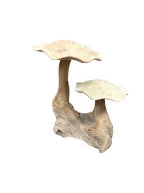 Teak Free-Form Block with Two Mushrooms 48cm