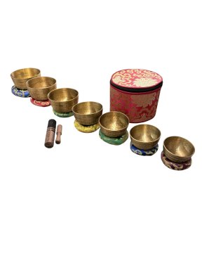 Set van 7 Tibetaanse Klankschalen met Opbergtas / harmoniserende klank en diepe ontspanning