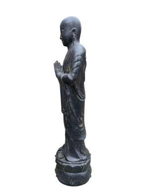 Deze indrukwekkende staande Shaolin-monnik in biddende houding belichaamt de perfecte balans tussen innerlijke rust en uiterlijke kracht. Met gevouwen handen en rechte houding straalt hij discipline, toewijding en spirituele kracht uit.