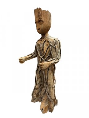 Staand beeld van een man, handgemaakt uit natuurlijk teakwortelhout, hoogte 100 cm.