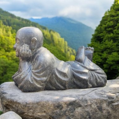 Met zijn kalme uitstraling en contemplatieve houding inspireert hij tot meditatie en reflectie.