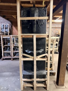 "Staande Waterfontein met Olifantshoofd – Stromende Rust en Wijsheid"